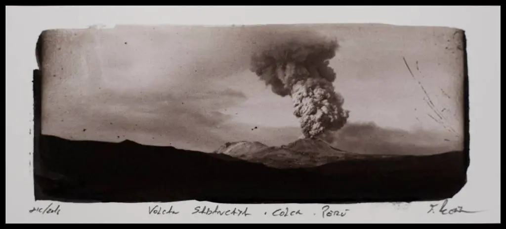 Conocí a Fernando Aceña en Arica en 2016, poco después de su llegada desde Perú. Estuvimos estacionados juntos en la playa corazones de Arica durante un par de semanas. Durante ese tiempo, grabamos mientras trabajaba fotografiando desde su camión. Recientemente había implementado un estenopo y estaba probando un pliego de película lith que había conseguido en Arica, positivando en papeles emulsionados con Van Dyke. Los fines de semana, iba a las Cuevas de Anzota para realizar sesiones con su museo, donde las personas podían experimentar “La Magia de la Luz” a cambio de un aporte voluntario.